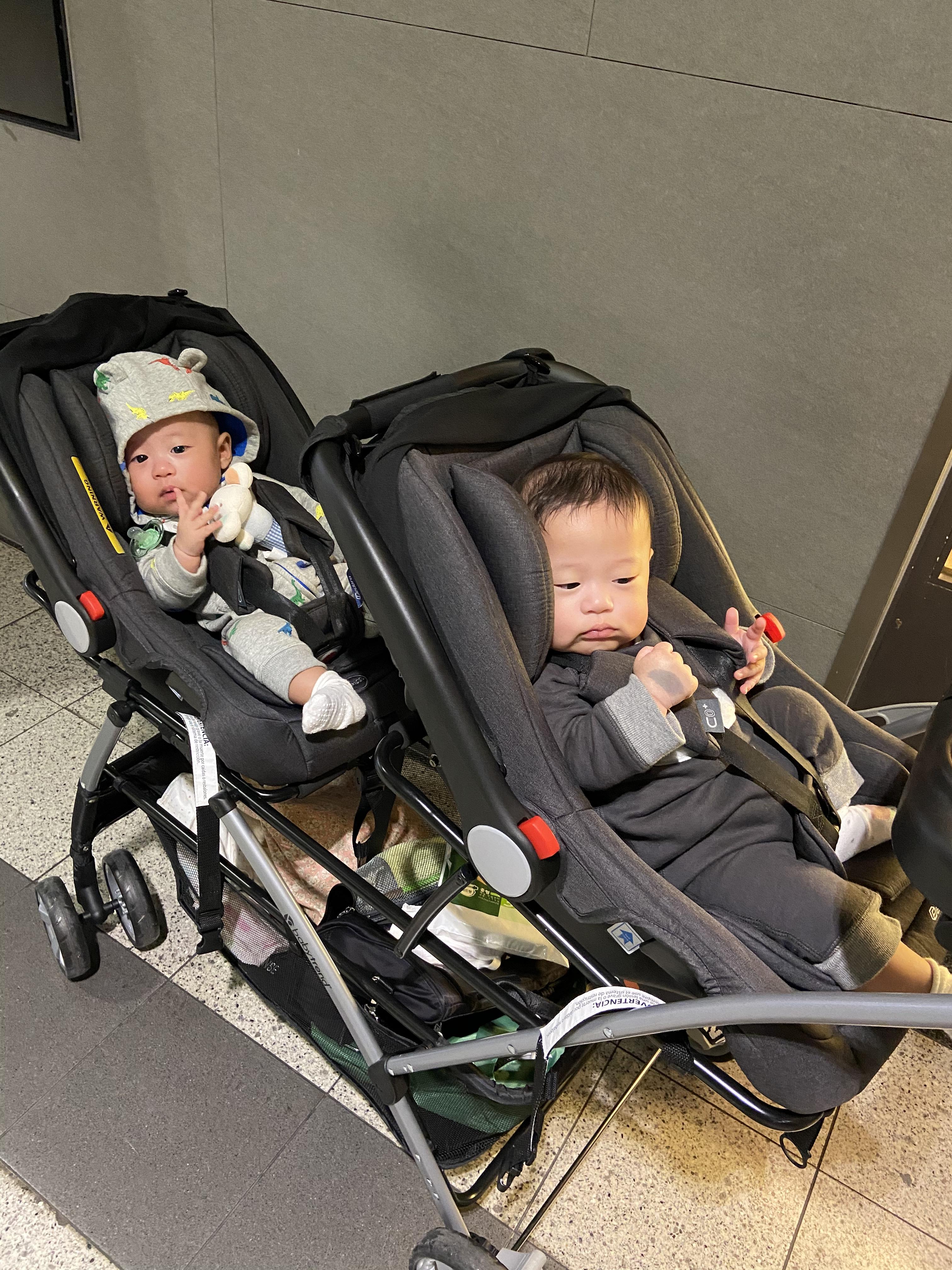 신생아는 반드시 바구니 카시트에 태워 이동해야 한다. 가끔씩 너무 작아서 안고 간다는 사람이 있는데 어른들이 받는 충격을 안겨 있는 아기가 다 흡수한다고 한다. 그리고 작아도 다 태울 수 있다. 신생아용 패드를 쓰고 남는 공간은 담요나 겉싸개로 흔들리지 않게 채워주면 된다. 신생아 때부터 쓸 수 있는 카시트가 있다고 하는데 우리는 외래를 많이 (한달에 두번) 다녀서 바구니 카시트 + 카시트 거치대 (스냅앤고 더블)로 준비했다. 쌍둥이들에게 이건 정말 대박 꿀템이라고 할 수 있다! 7키로인데 아직까지 불편하지 않고 딱 맞게 잘 타고 있다. 애들이 안정적으로 앉아 있을때쯤 아이소픽스 카시트로 바꾸려고 한다. 유모차는 리안 트윈으로 준비해뒀다.가까운 소아과에 걸어서 갈 때는 신생아때는 슬링을 썼고 좀 더 커서는 아기띠를 사용했다. 슬링이 훨씬 편하다. 왈라부 슬링은 하나는 물려 받고 하나는 중고로 샀다. (만원) 아기띠는 모두 물려 받았다.