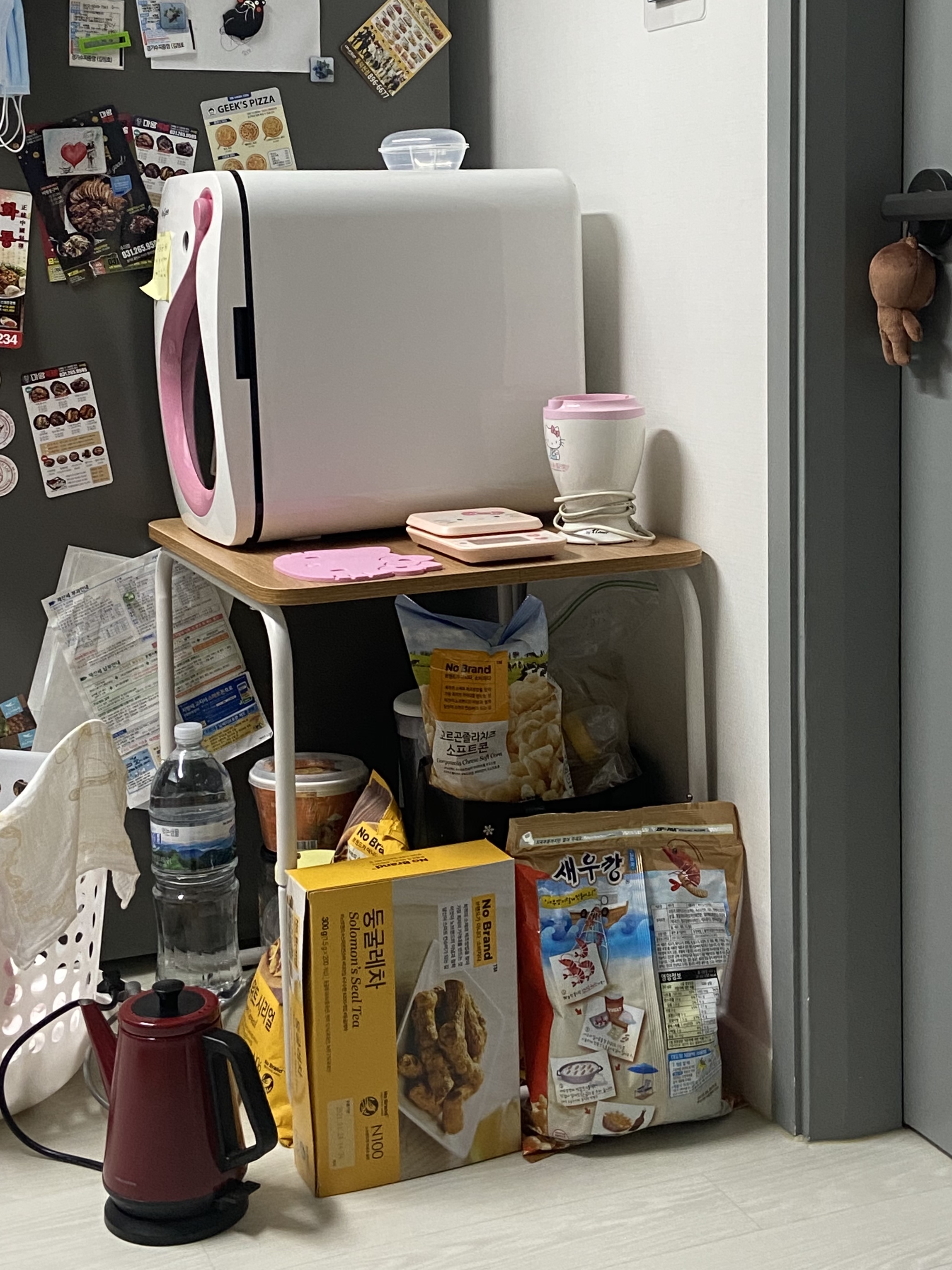 애매한 높이의 젖병소독기 거치대(?) 모유 수유를 한다면 수유 쿠션, 수유 브라, 수유 나시가 필수(인것 같다. 안 해봤지만)이다. 유축 모유를 먹이는 경우에는 유축기(이건 너무 당연히), 휴대용 유축기, 모유 저장팩, 수유 패드가 필요하다.