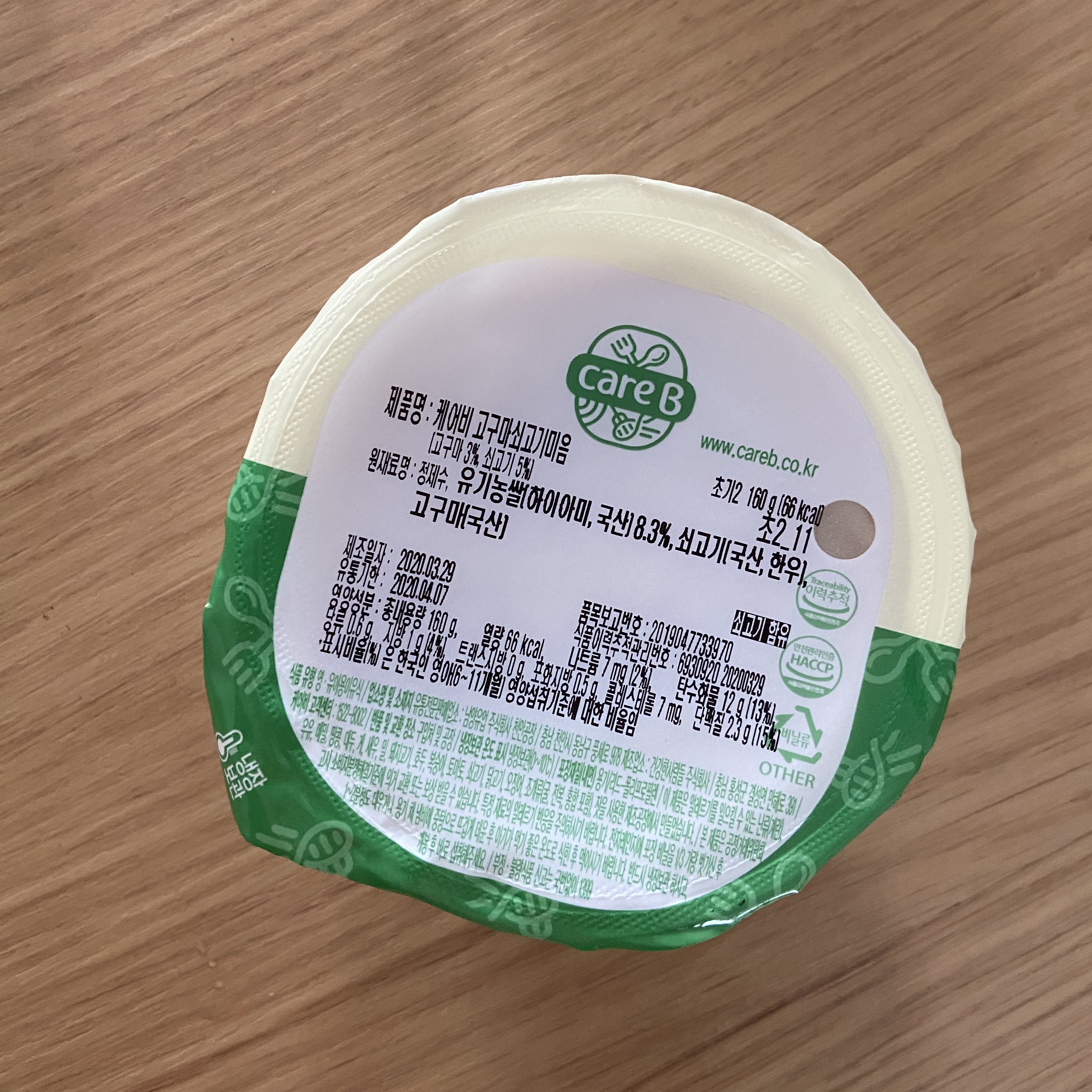 묽기는 사이트에 나와있는대로 떠먹는 요거트 정도이고 8배죽이다. 직접 만들때는 10배죽을 했는데 이제 8배죽을 해도 될 것 같다. 초기2를 만들때 너무 곱게 걸러졌나 하는 생각이 들때가 있는데 케어비도 건더기가 아예 없을 정도로 곱게 걸러져 있었다. 초기2까지는 계속 곱게 걸러야겠다.