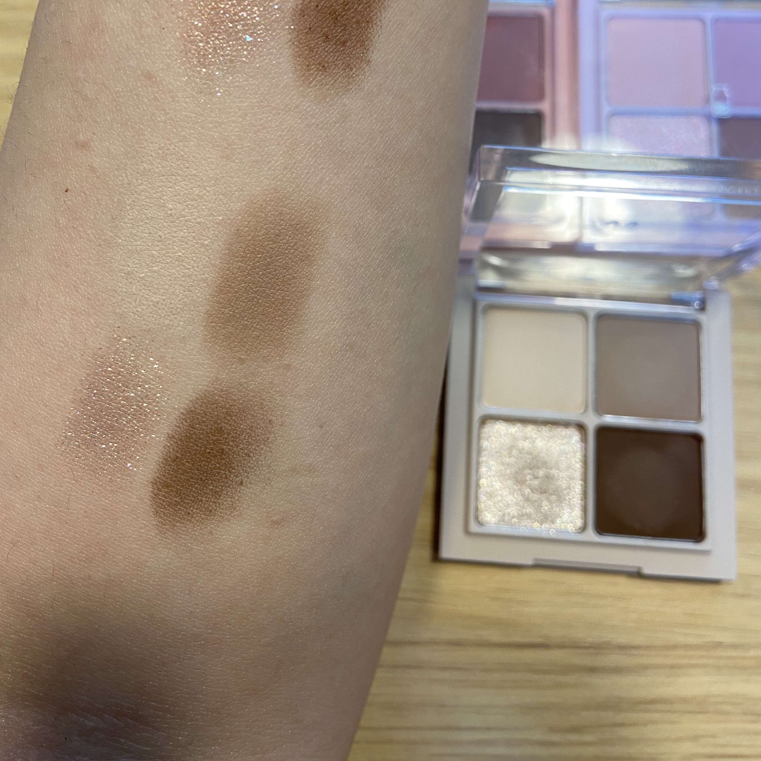롬앤 배러댄아이즈 말린메밀꽃 솔직히 말린메밀꽃은 까만 쿨톤이 했을 때 확 예쁘진 않다. 원래 피부가 갈색(?)이라 그냥 눈두덩이만 조금 진해지는 정도이다. 말린라벤더도 라이트톤을 위한거라 자체 색대로 예쁘게 발색되지는 않는다. 오히려 별 기대 안하고 샀던 말린 장미가 정말 예쁘다!! 글리터가 진짜 예쁘다😍