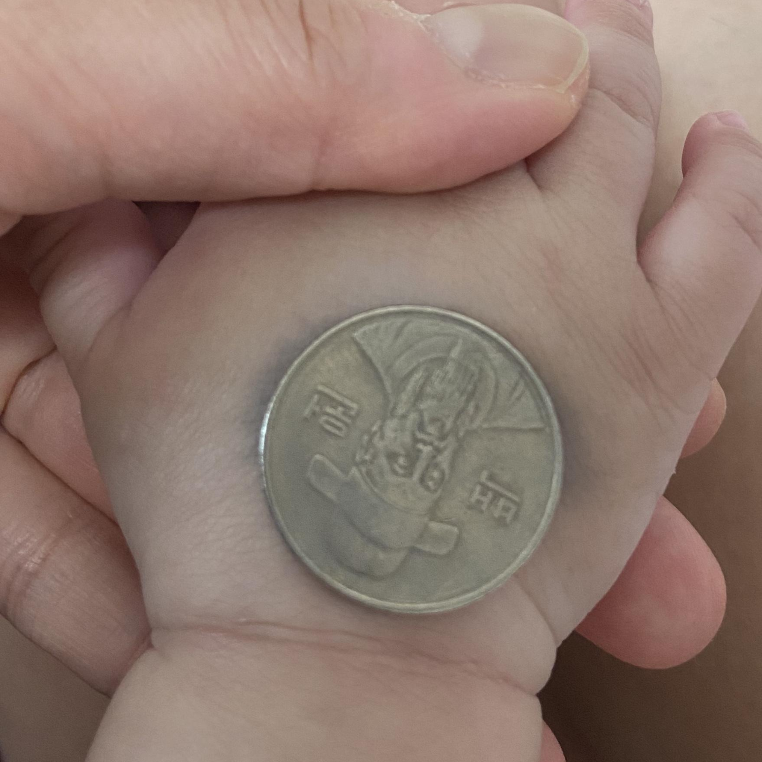 선둥이는 손등에 백원짜리 동전만한 점이 있다. 일란성 쌍둥이에 키와 몸무게도 비슷해서 점으로 애들을 구별한다. 도우미 이모님도 삼신 할머니가 너무 똑같이 생기면 엄마 아빠가 못 알아볼수도 있으니 손등에 붓으로 쓱 찍어주셨다고 귀엽게 봐주시는 점이다.