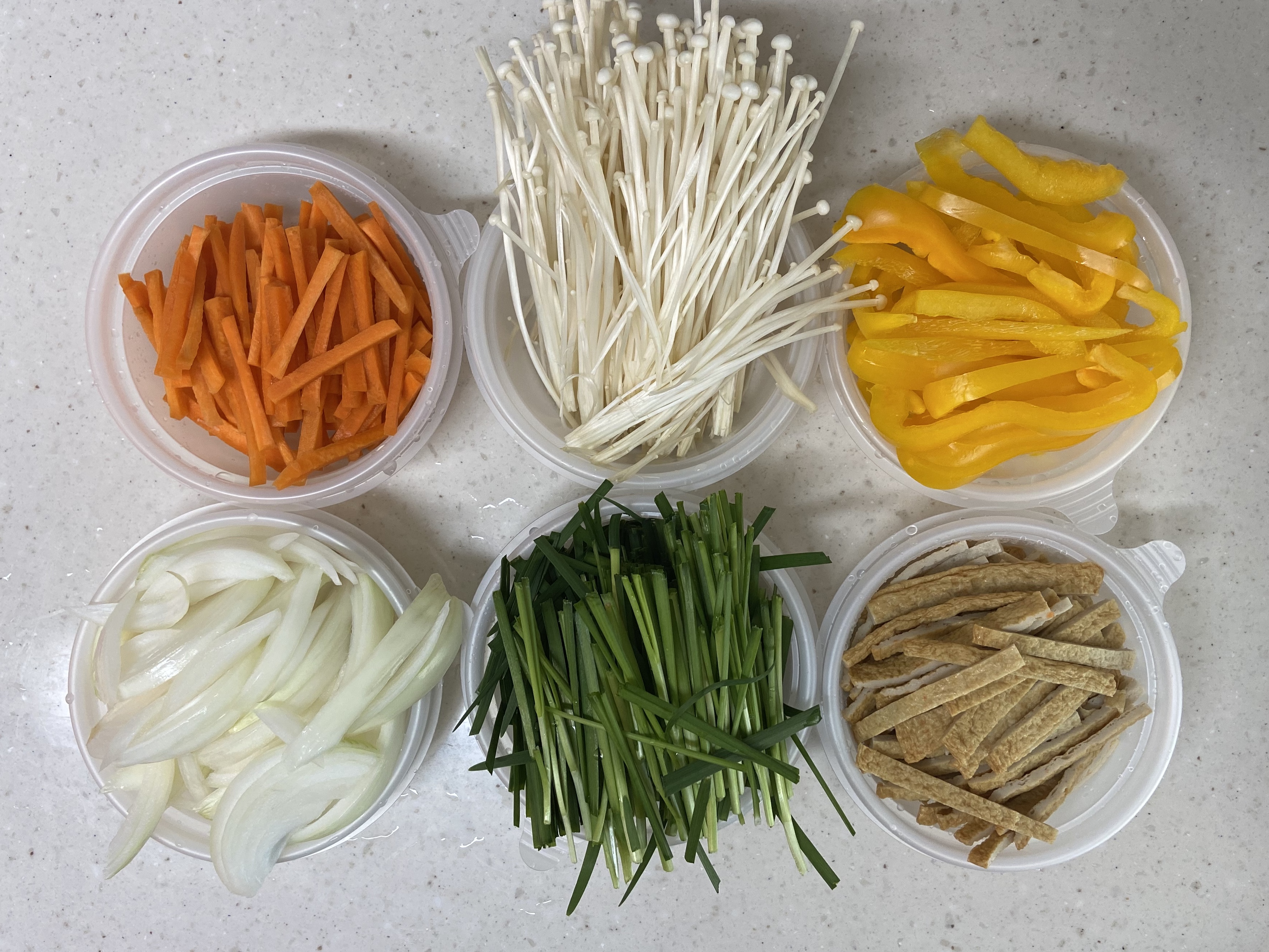 잡채 재료 - 당근, 팽이버섯, 파프리카, 양파, 부추, 어묵
