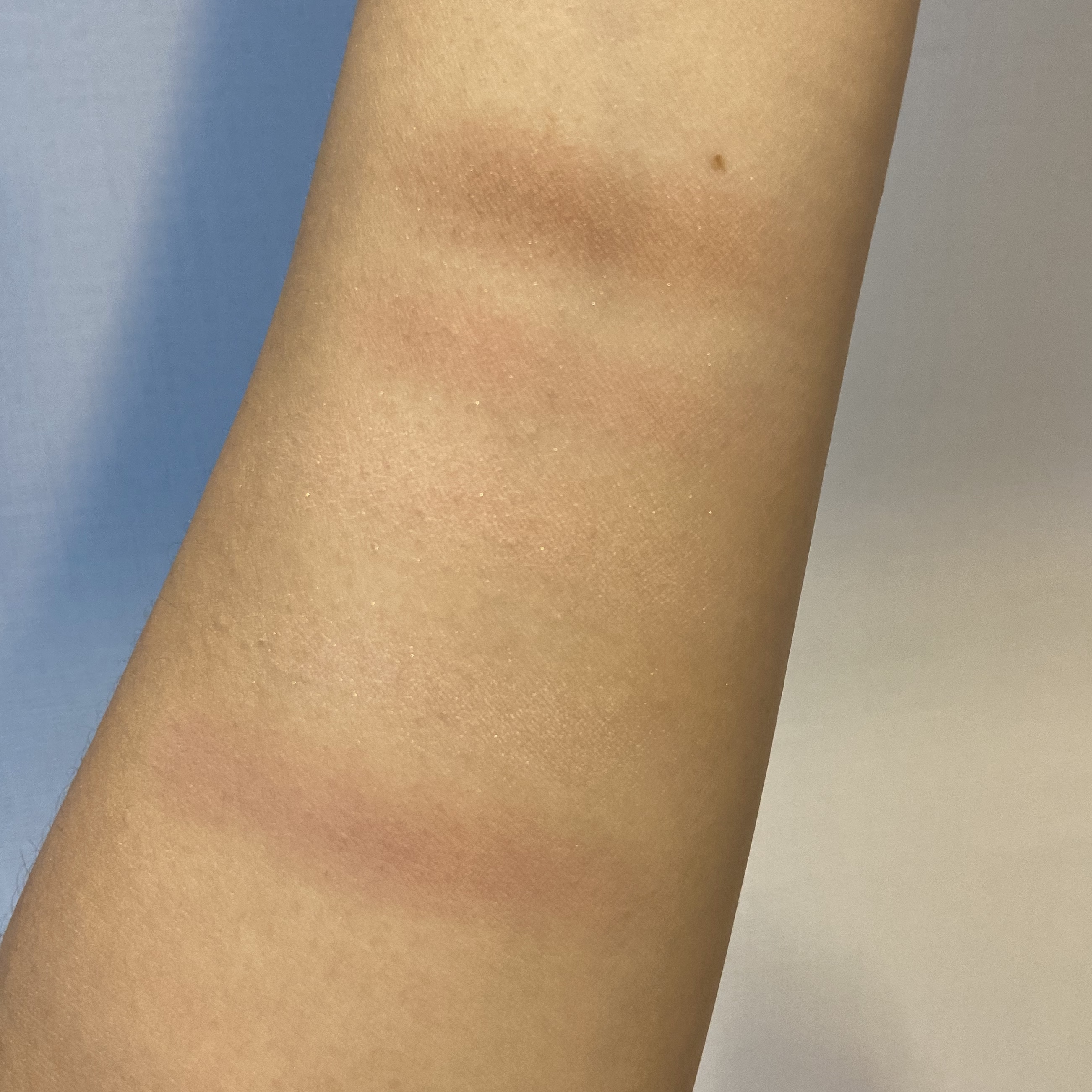 팔안쪽보다 얼굴이 더 어두우니 구아바와 로즈무드 첫번째 색은 눈에 올리면 이것보다 훨씬 발색이 안된다.
