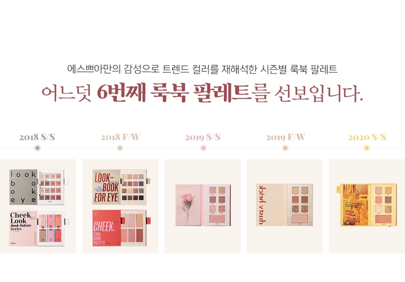 아이북은 7번부터 모으기 시작했다. 사실 색을 보면 딱히 나한테 어울리는 (쿨하고 뮤트한) 색은 아니다. 아무래도 “올해의 색”에 맞춰야 하는데 그 색은 딱히 메이크업만을 위한 색이 아니니 한계가 있다. 2020년은 클래식 블루인데 사실 누가 파란색 섀도우를 하고 다니나... (그리너리도 좀 심했다..ㅠ) 내돈내산으로 검색하면 후기가 거의 안나온다. 솔까말 이번 클래식 블루는 좀 망했.. 그래도 이 엄한 색으로 이 정도로 뽑은 것만해도 수고했어 브들.. ㅠㅠ 아무튼 매년마다 하나씩 모으는 것에 의미를 두고 있는데 이번에 에스쁘아 룩북을 보니 차라리 저걸 모을걸 하는 생각이 든다.