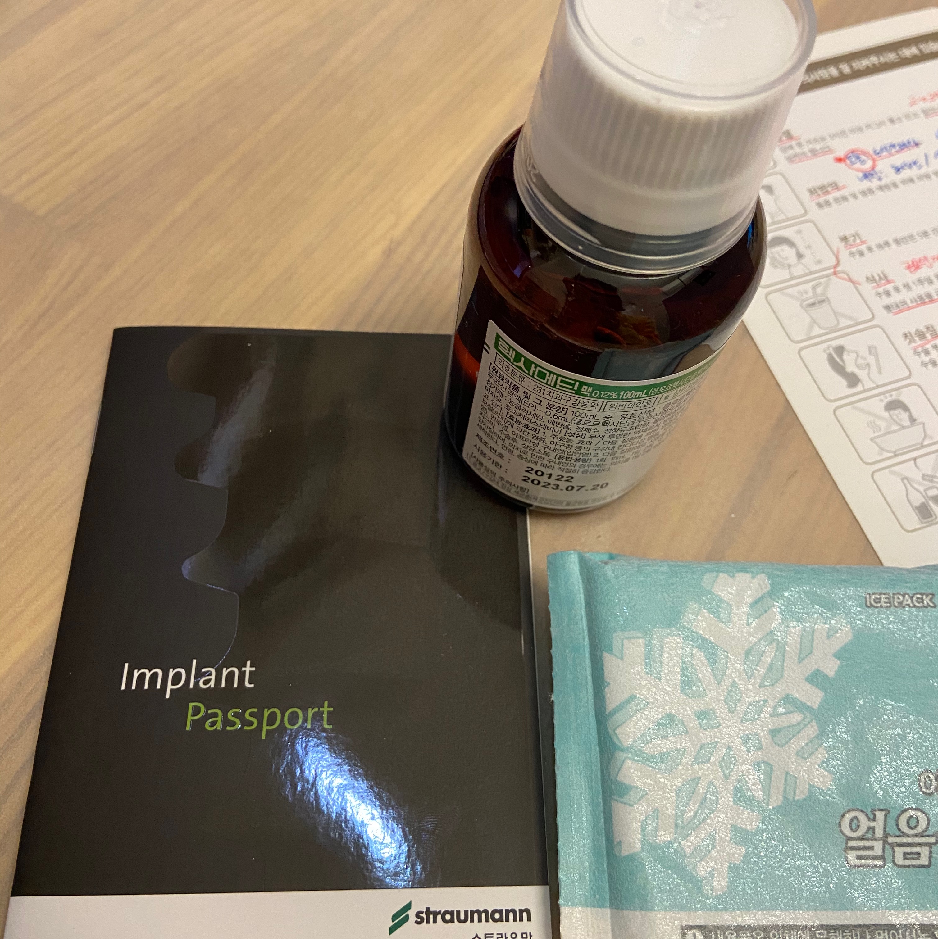 수술 후에는 엑스레이를 찍고 수술 중 찍은 사진을 보여주면서 설명해준다. 그리고 스트라우만에서 제공하는 임플란트 패쓰포트를 받는데 여기에 시리얼 넘버 같은게 찍힌 스티커를 붙여준다. 내가 이사를 가거나 혹시 치과가 없어졌을 때 다른 곳에서도 치료를 받을 수 있게 하기 위해서이다.