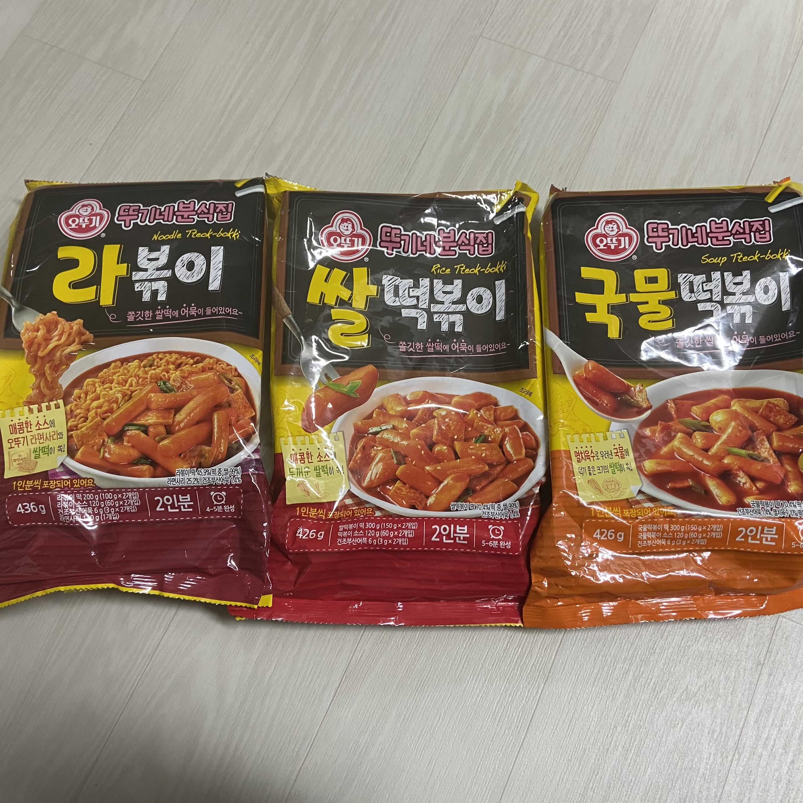 뚜기네분식집이라는 부제목(?)을 달고 있는 오뚜기 떡볶이가 있다. 이 제품들은 상온 보관 제품이고 1인분씩 소포장이 되어 있어서 냉장고가 없고 혼자 사는 자취생들에게 딱이라는 생각이 들었다. 물론 냉장고가 있고 가족 넷이서 사는 나에게도 딱이다 🥰