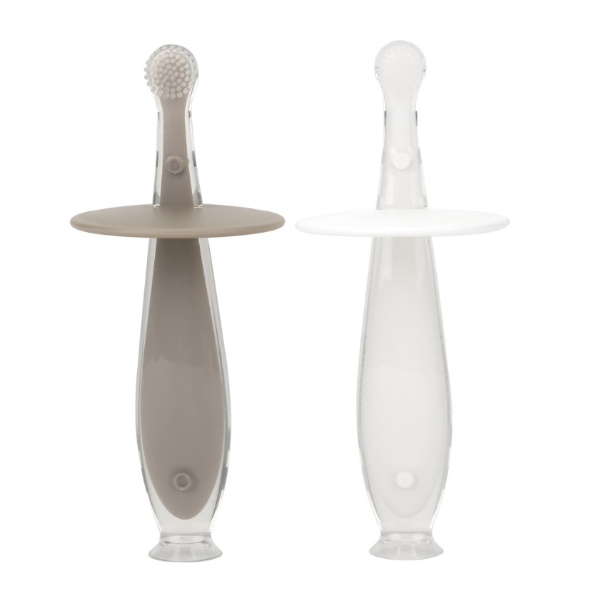 두번째 칫솔로는 데일리라이크 봉봉 실리콘 칫솔을 사용했다. 이 칫솔도 모와 몸통 전체가 실리콘으로 되어 있다. 밑 바닥이 흡착으로 되어 있어서 보관하기에도 편했고 무엇보다 목넘김 방지링이 끼워져 있어서 안전하다. 실리콘으로 된 칫솔은 사실 양치질보다는 아기님들이 칫솔과 친해지도록 하는기 목적이라 칫솔 모양의 치발기라고 생각하면 된다. 목넘김 방지링이 있어 갖고 놀라고 주어도 안심할 수 있다. 이때가 생후 11개월 정도 됐을 때고 중기 이유식으로 하루 두번 먹일 때여서 점심 이유식 하고 나서 물고 뜯으라고 이 칫솔을 주곤 했다.