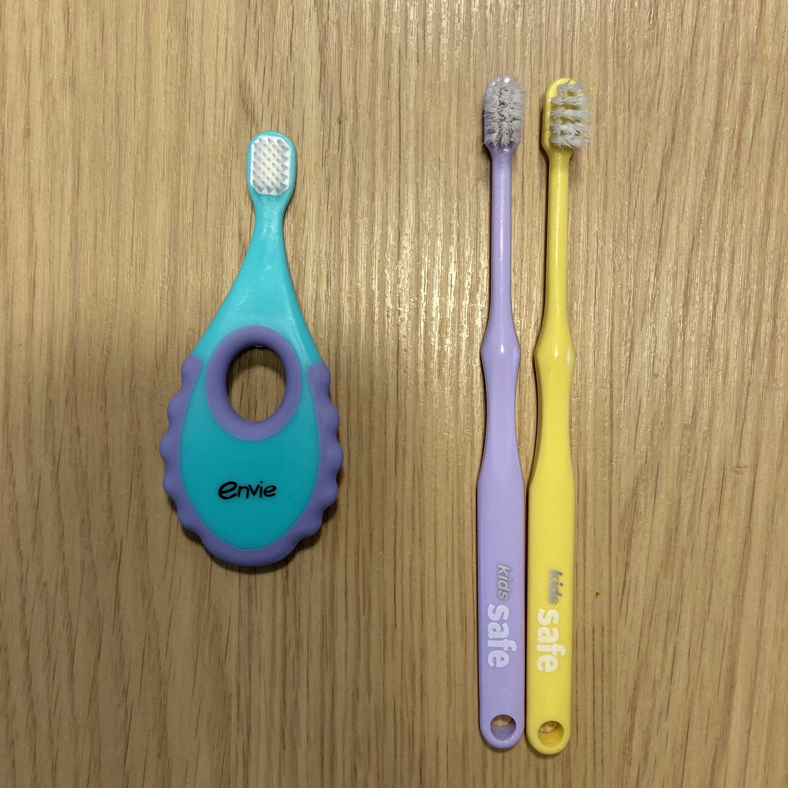 그렇게 18개월 동안 실리콘 모.. 아주 아기들이 쓰는 칫솔이라 할 수 있는 칫솔을 오랫동안 썼다. 그런데 후기 이유식을 먹고 완료기 이유식을 먹으면서 입자 큰 고기를 씹다 보니 이제 고기가 제법 끼기 시작했다. 음식 입자는 커지고 아기 이는 점점 많아지고 커지고 심지어 이제 소구치 (작은 어금니)도 나기 시작했으니 말이다! 그리고 곧 어린이집을 갈 예정인데 그때 조금이라도 선생님의 수고를 덜어드리고자 나름 어린스러운(?) 칫솔을 써야겠다는 생각이 들었다. 그리하여 선택하게 된 것이 바로 키즈 세이프 칫솔이다.