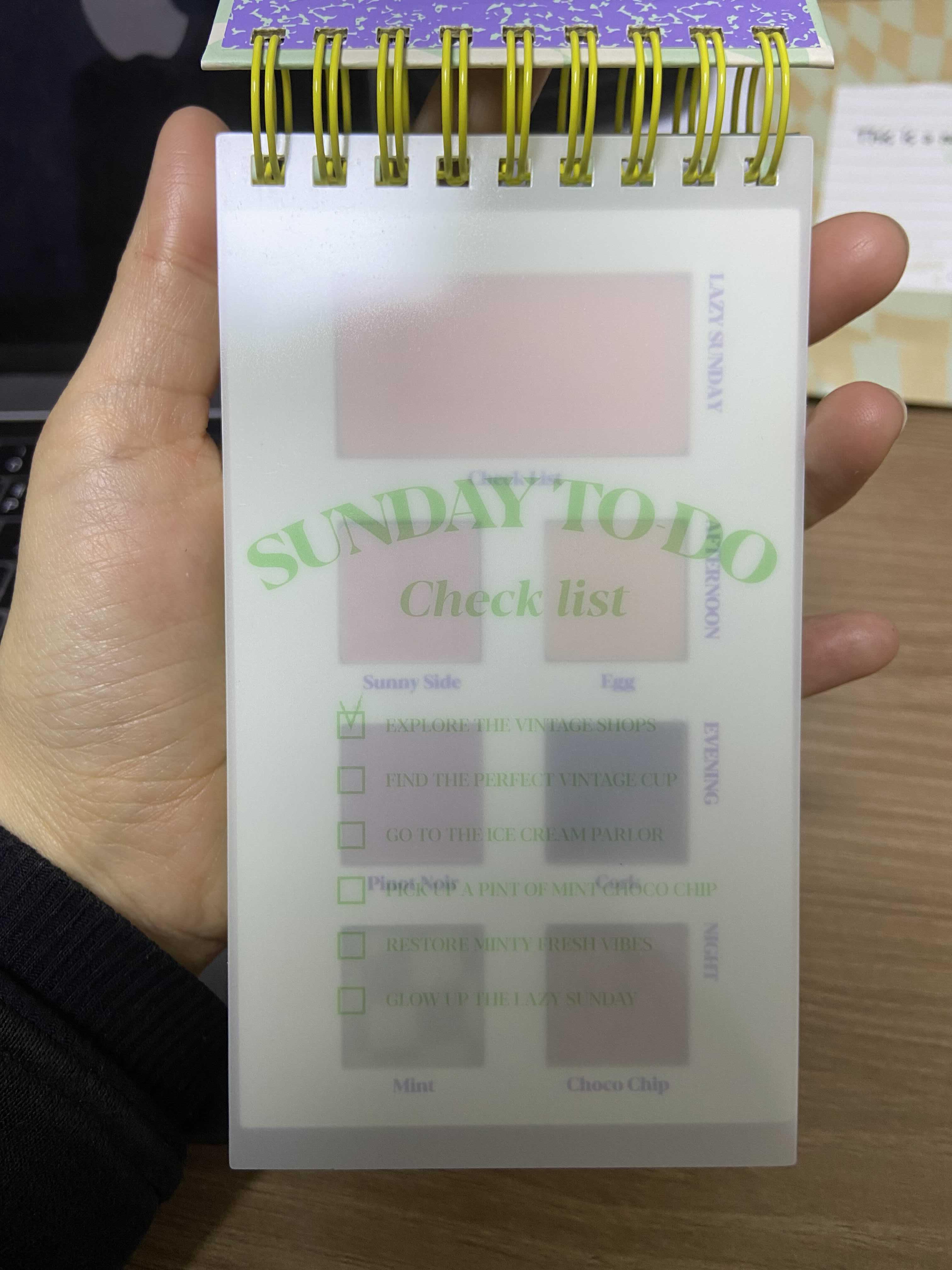일단 포장부터 컨셉 낭낭… 빈티지 가게에서 크래프트지로 포장한 듯한 포장지에 아무렇게나 무심하게 수첩 찢어서 붙인 것같은 스티커, 틀린 글자 죽죽 긋고 쓴 글씨까지 진짜 디테일 잘 살렸다 👍🏻
