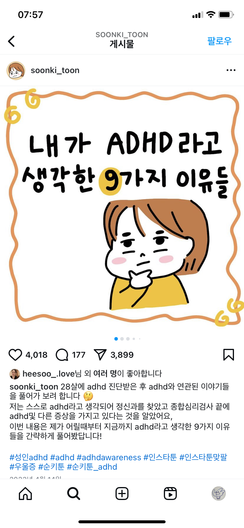 인스타에서 우연히 성인 ADHD 릴스를 보게 되었는데.. 이거 그냥 나잖아?!??????